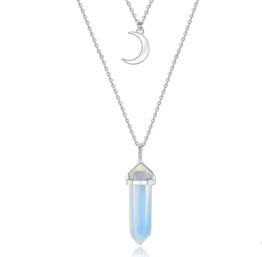 Crystal Moon Hexagonal Column Crescent Turquoise Necklace