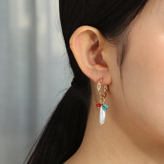 C-shaped Metal Earrings Retro Natural Stone Mix And Match Special-shaped Pearl Jewelry Earrings