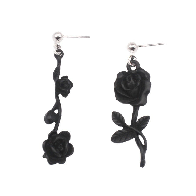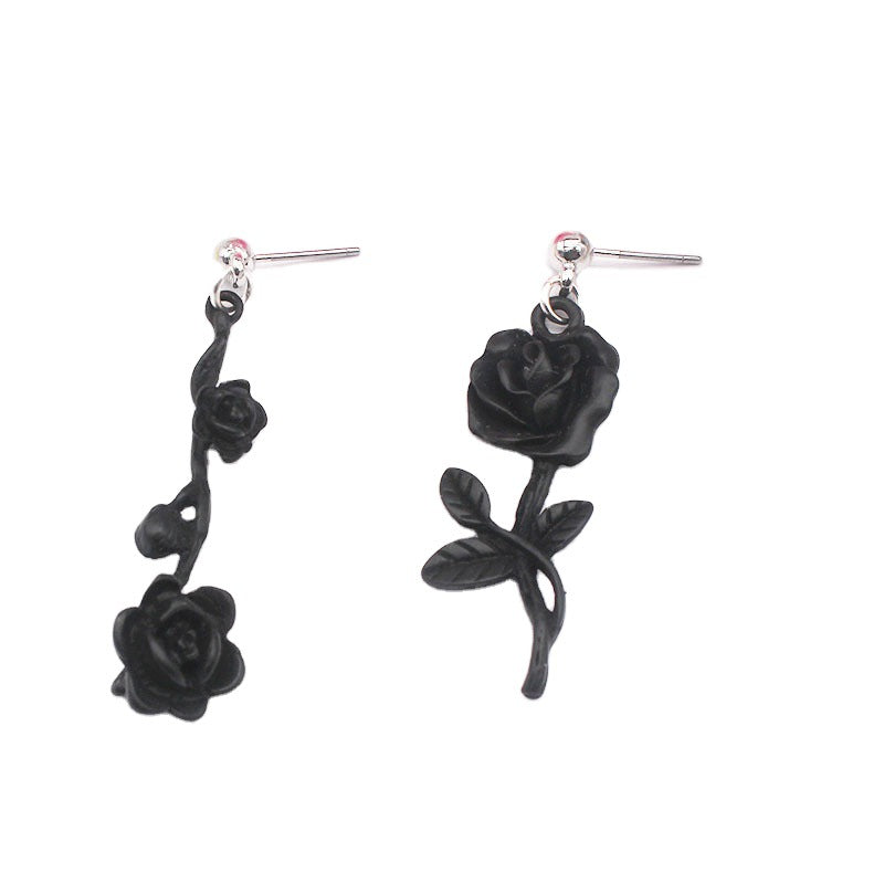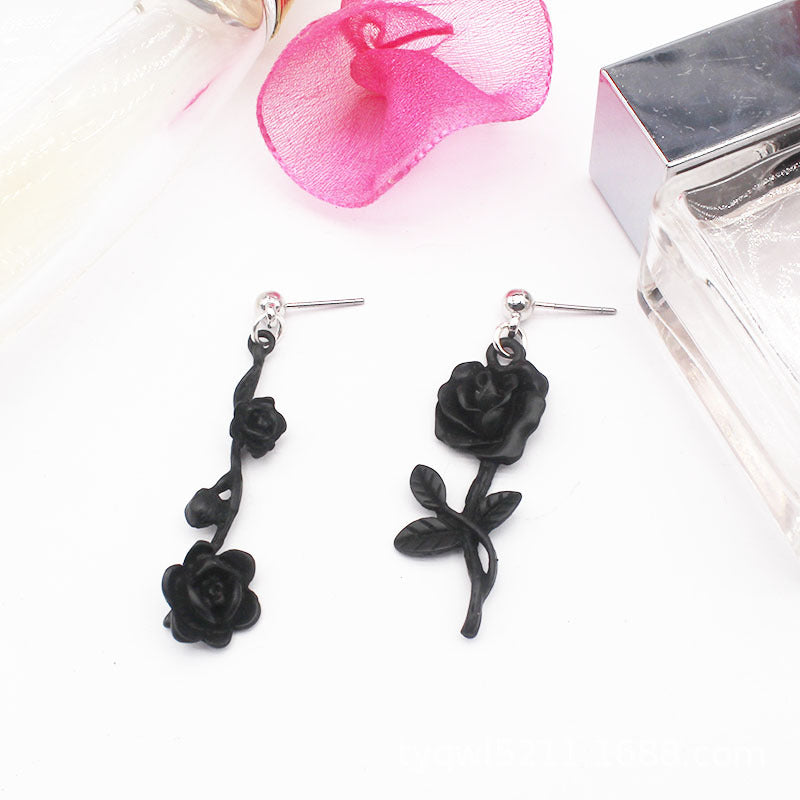 Dark Gothic Style Black Wild Rose Stud Earrings