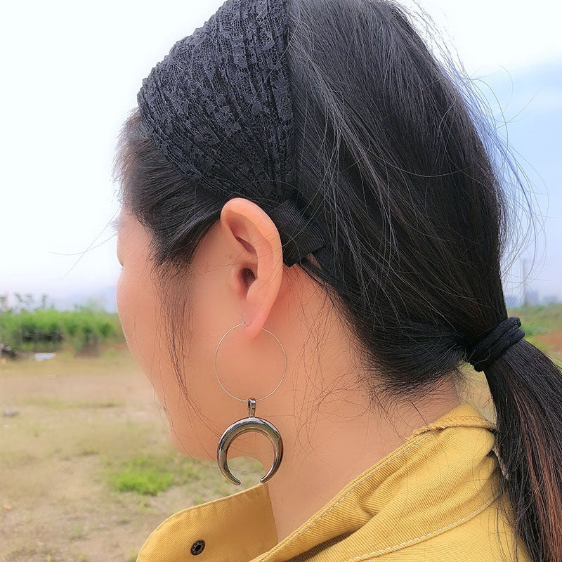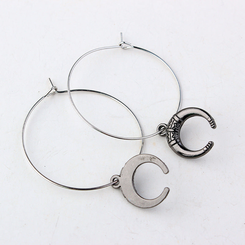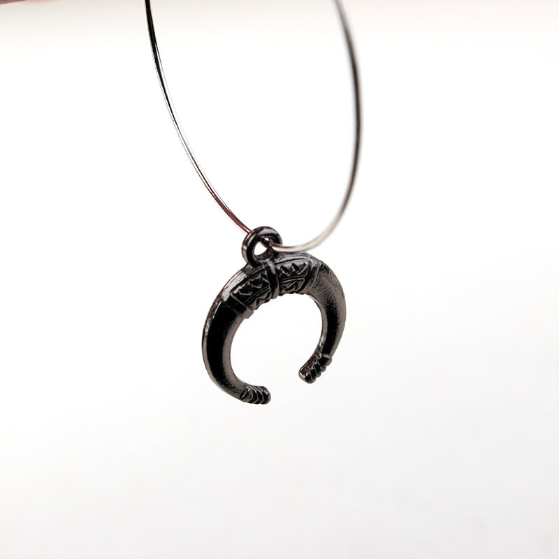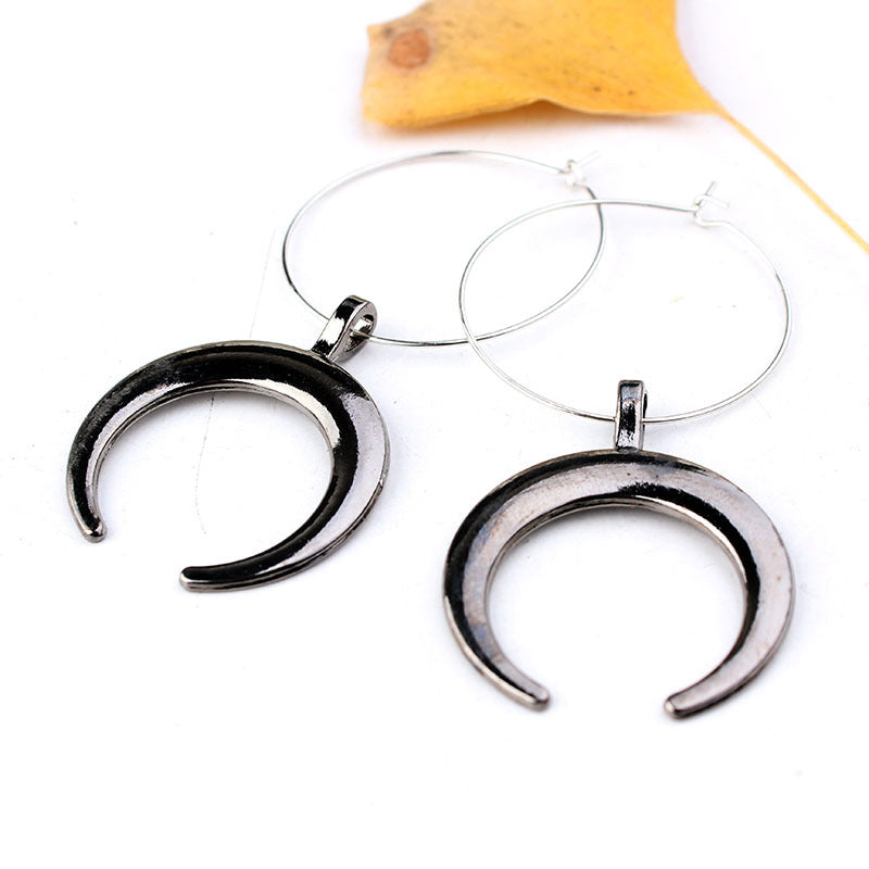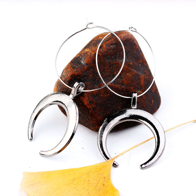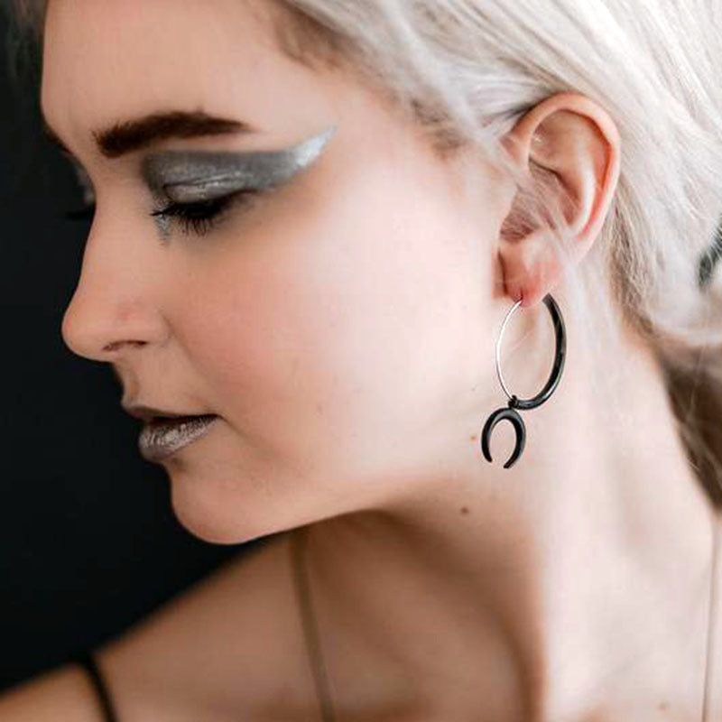 European And American Gothic Moon Hoop Punk Exaggerated Black Horns Pagan Earrings