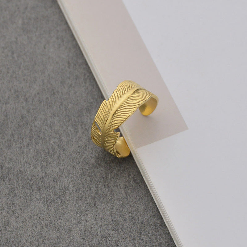 French Female Romantic Feather Opening Adjustment Ring Titanium Steel 14K Gold Color Preservation Leaf Leaf Ring