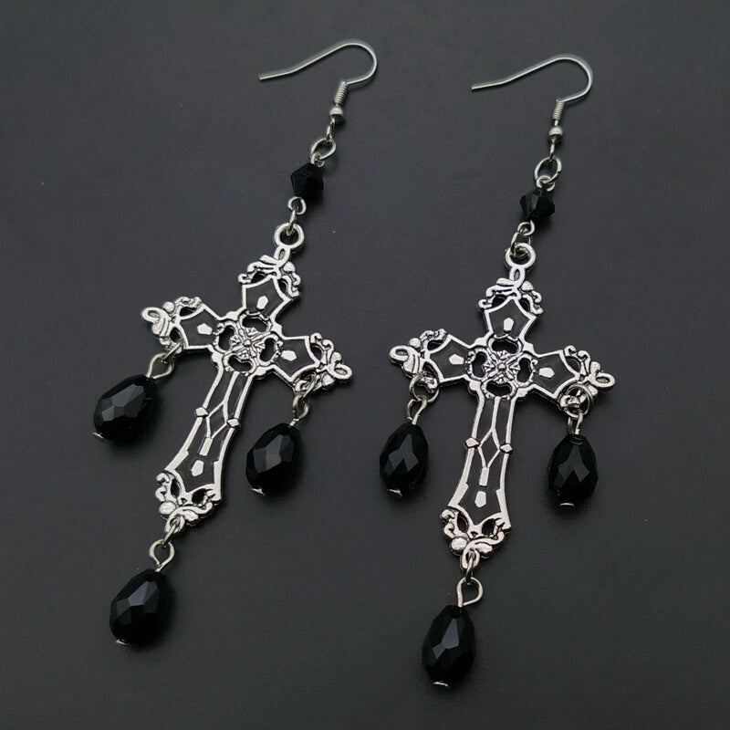Gothic Black Cross Garnet And Crystal Chandelier Earrings La