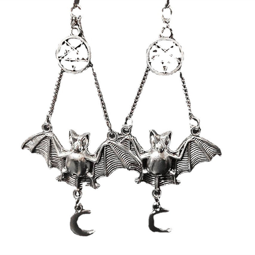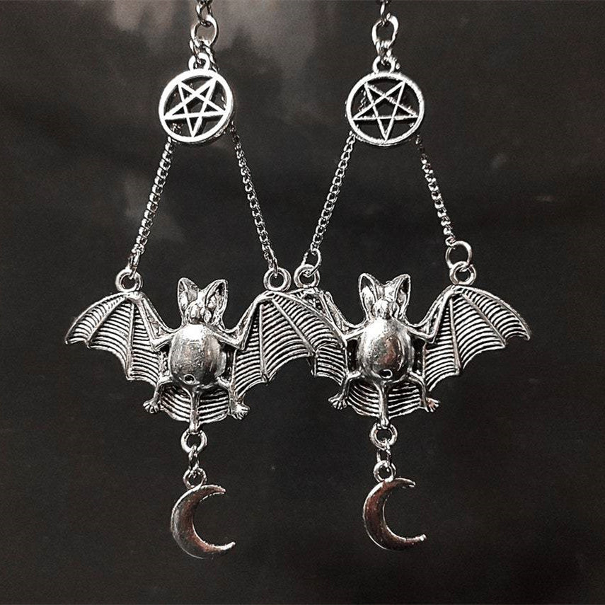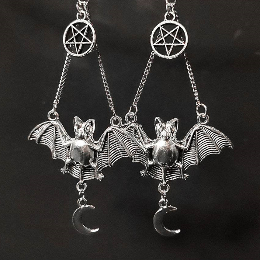Gothic Halloween Bat Pentagram Moon Charm Earrings