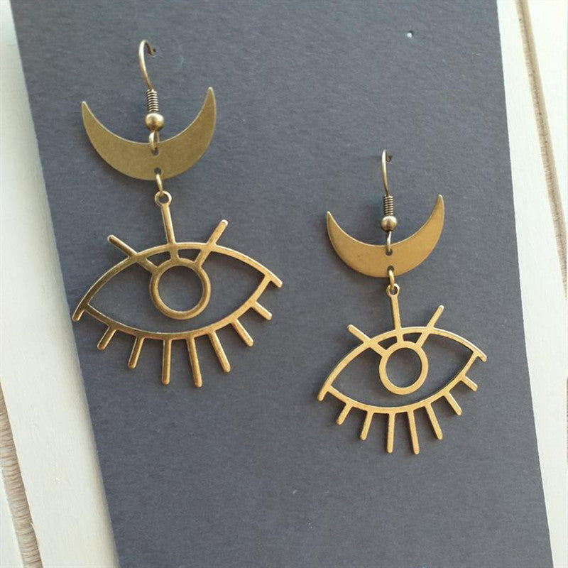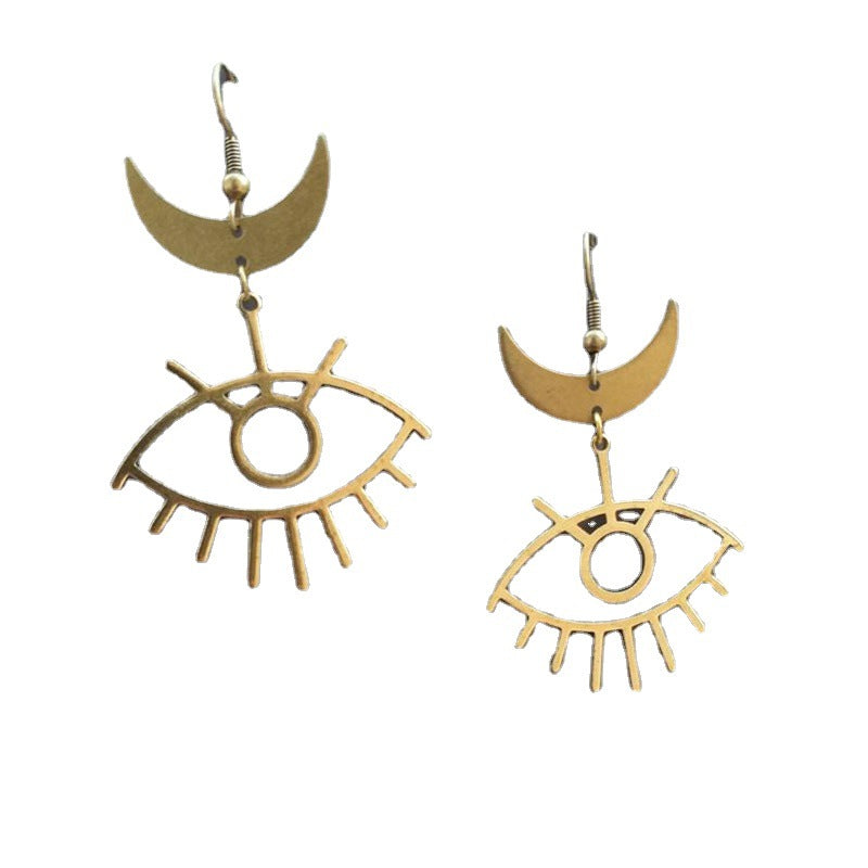 Hot Selling Gothic Simple Crescent Big Eyes Pendant Earrings