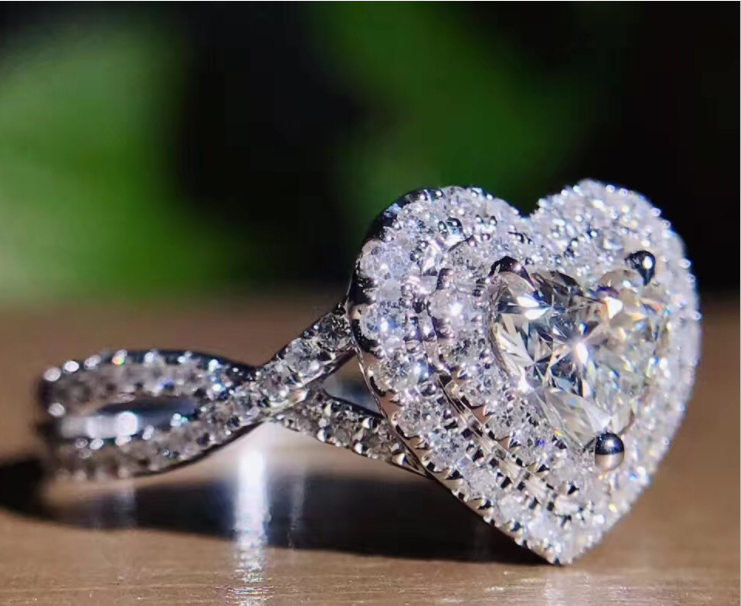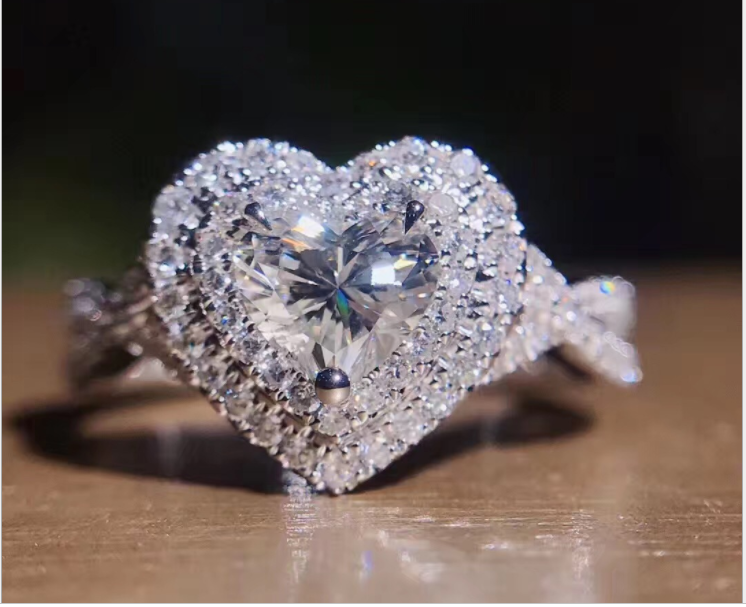 Luxury Micro Inlaid heart-shaped simulation diamond ring