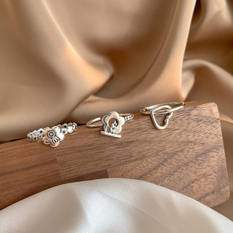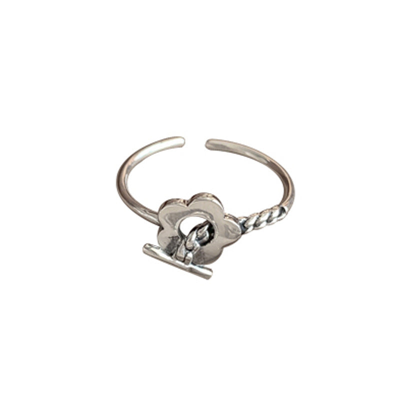 Net Red Forest Fashion Flower Buckle Index Finger Silver Ring
