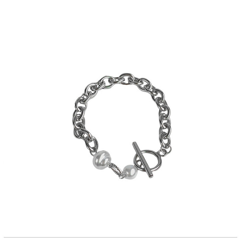 Stitched Baroque Pearl Titanium Steel Bracelet