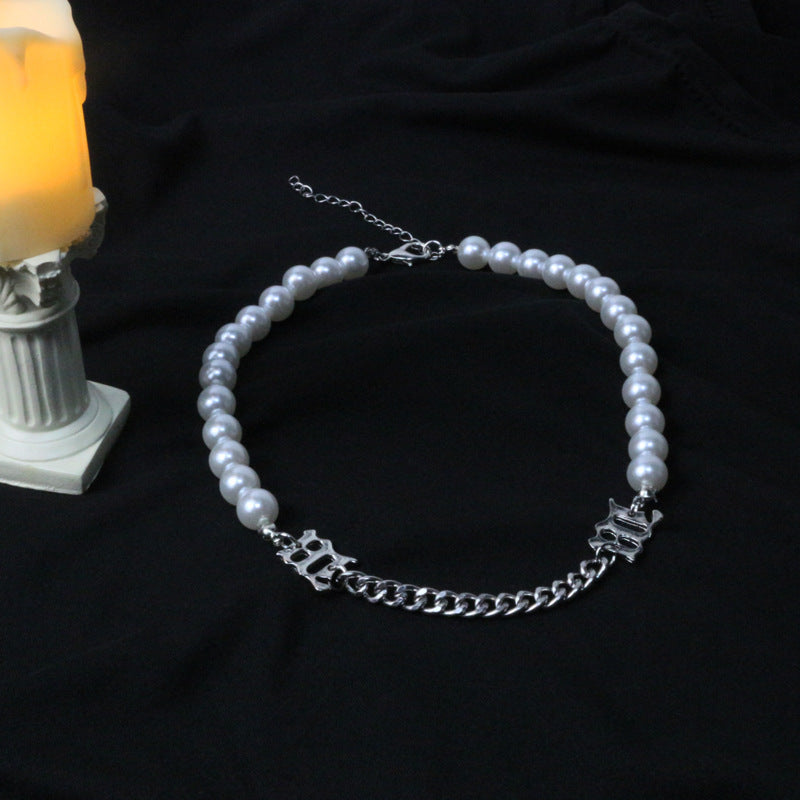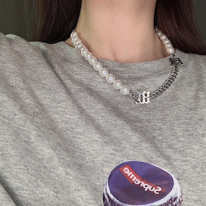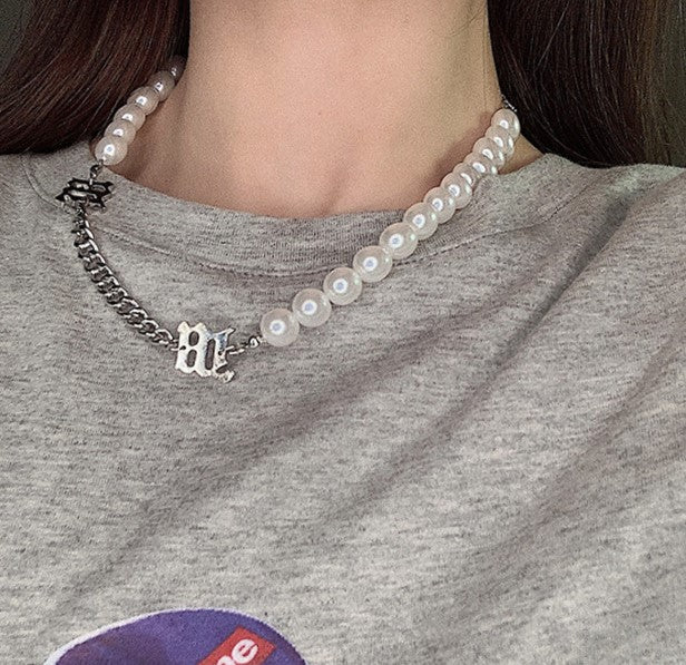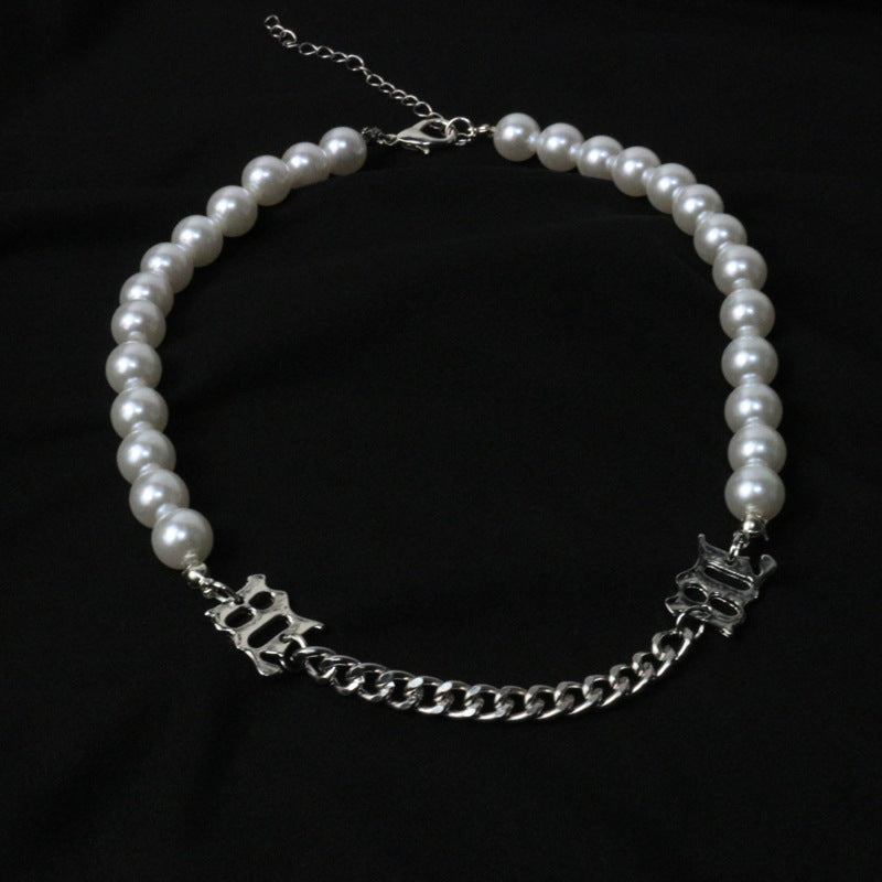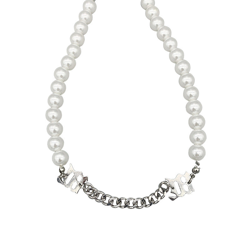 Female pearl chain stitching necklace
